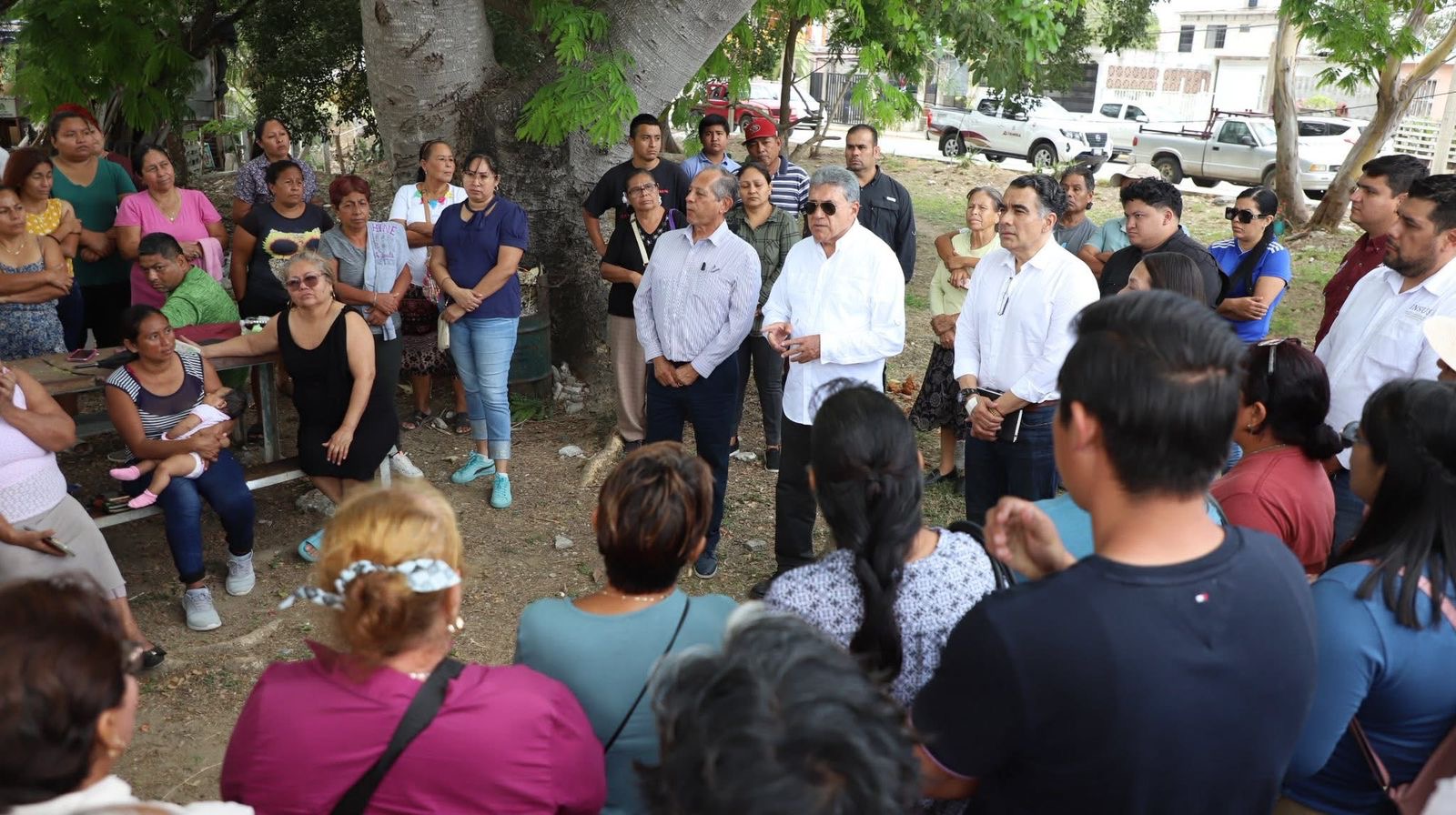 Durante la jornada, el edil estuvo acompañado por el Mtro. Samuel Peña Garza, Director General y Delegado Especial del FIFONAFE, así como por el Arq. Víctor Rubén Guzmán Dagnino, Director General del INSUS, con quienes atendió las inquietudes de la ciudadanía relacionadas con la regularización de sus predios.